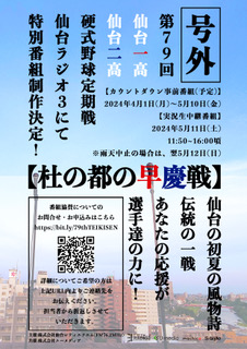 5月に開催される硬式野球部定期戦が仙台ラジオ3でラジオ放送されることになり,企画会社より協賛金募集の案内がありました。
